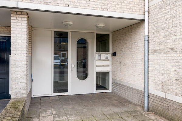 Bellenplateau waarna toegang tot afgesloten centrale hal met lift, postboxen, trappenhuis, aparte fietsenberging.