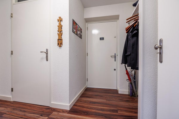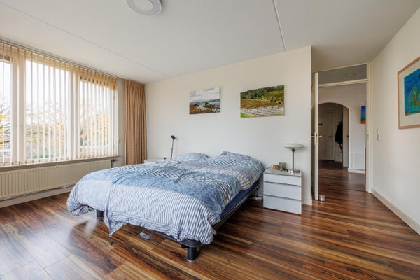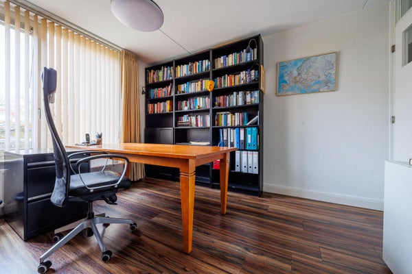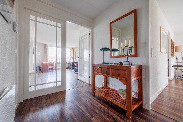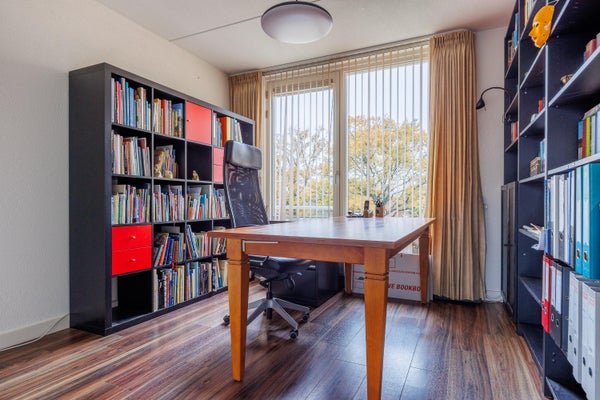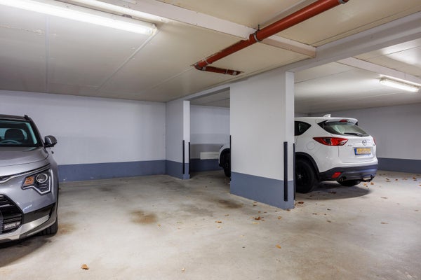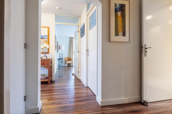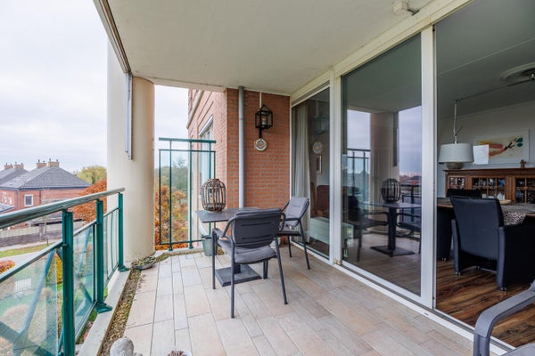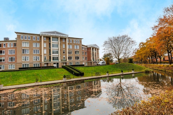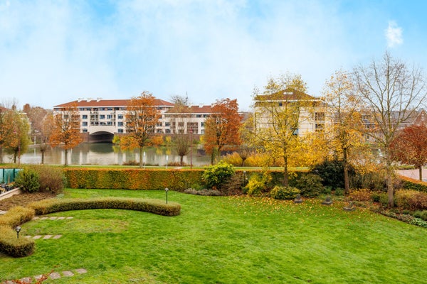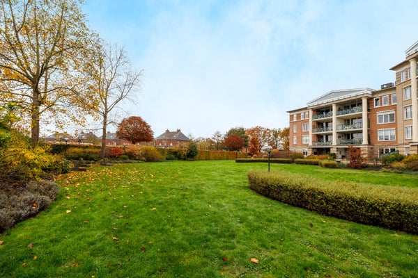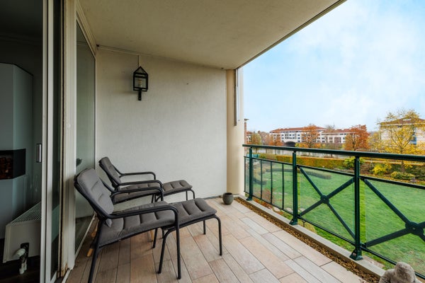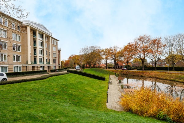 Bij binnenkomst komt men in een hal met toegang tot het toilet, slaapkamers en de badkamer. De lichte woonkamer heeft een open keuken en biedt toegang tot het zonnige terras met uitzicht over de wijk. De hoofdslaapkamer is ruim met een inloopkast, en de tweede slaapkamer wordt momenteel als kantoor gebruikt. De badkamer is luxe ingericht met een ruime douche, dubbele wastafel en vloerverwarming. Het complex heeft een grote tuin met vijver, is goed bereikbaar en ligt nabij winkelvoorzieningen.