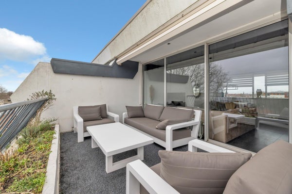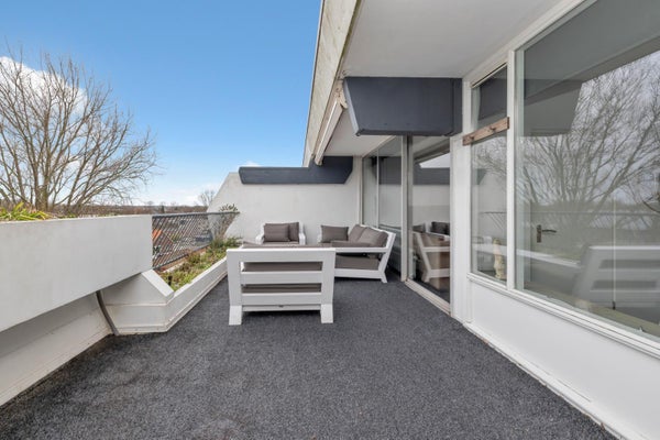 Een van de grootste pluspunten van dit appartement is het zeer ruime terras op het zuidwesten. Zowel vanuit de woonkamer als de slaapkamer heeft u toegang tot deze buitenruimte. Hier geniet u van veel zon, privacy en een fraai uitzicht. Het terras is voorzien van een elektrisch zonnescherm en beschikt over een praktische berging.