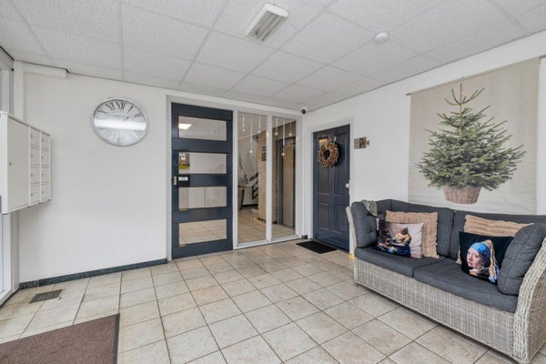 Complex: Entree, bellentableau met intercom, brievenbussen, hal, trappenhuis, lift en toegang naar de berging.
