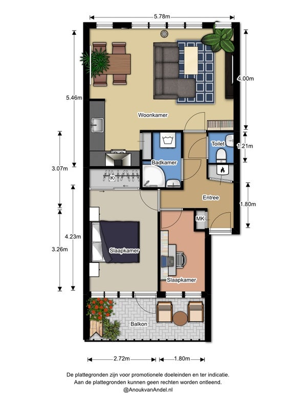 - De galerijflat heeft een woonoppervlakte van 57 m² en beschikt over 3 kamers, waarvan 2 slaapkamers;