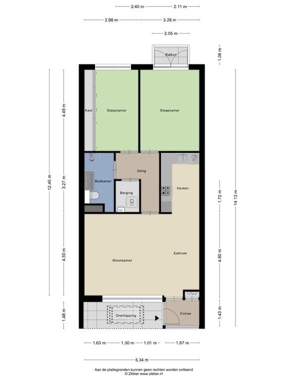 • De galerijflat heeft een woonoppervlakte van 81 m² en beschikt over 3 kamers, waarvan 2 slaapkamers;