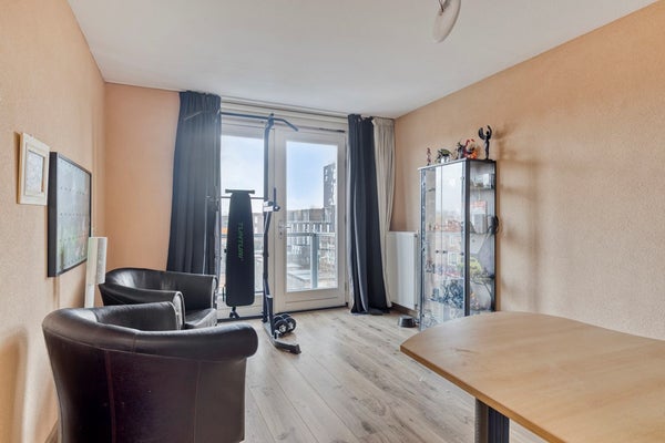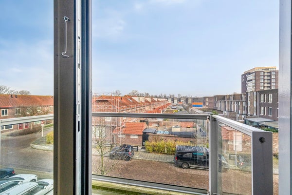 Het balkon is bereikbaar vanuit één van de slaapkamers en vormt een fijne verlenging van de woning. Er is voldoende ruimte voor een stoel of een klein zitje, waardoor u hier rustig kunt genieten van een moment voor uzelf, een kop koffie in de ochtend of frisse lucht aan het einde van de dag.