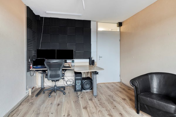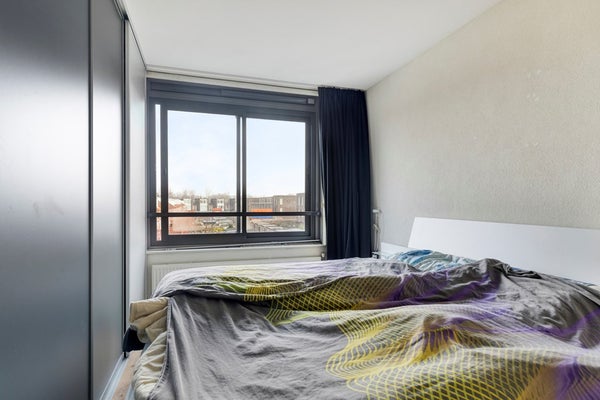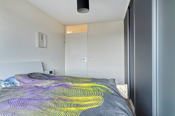 Via de hal bereikt u de twee slaapkamers, beide gelegen aan de rustige achterzijde van de woning. De kamers zijn goed van formaat en bieden voldoende ruimte voor een comfortabel bed, een kledingkast en eventueel een bureau, waardoor ze ook uitstekend geschikt zijn als thuiswerkplek. Eén slaapkamer beschikt over ingebouwde kastruimte, wat extra gemak biedt, terwijl de andere slaapkamer directe toegang heeft tot het balkon. Beide kamers zijn keurig onderhouden en stralen rust en comfort uit.