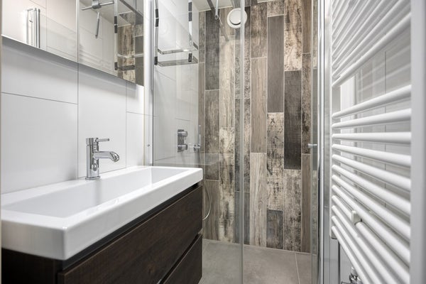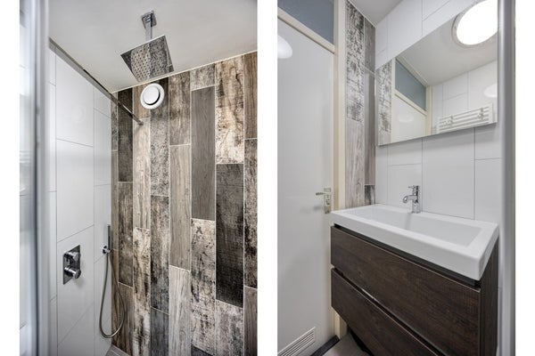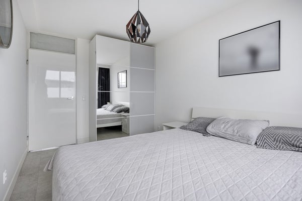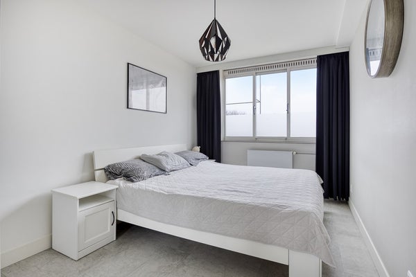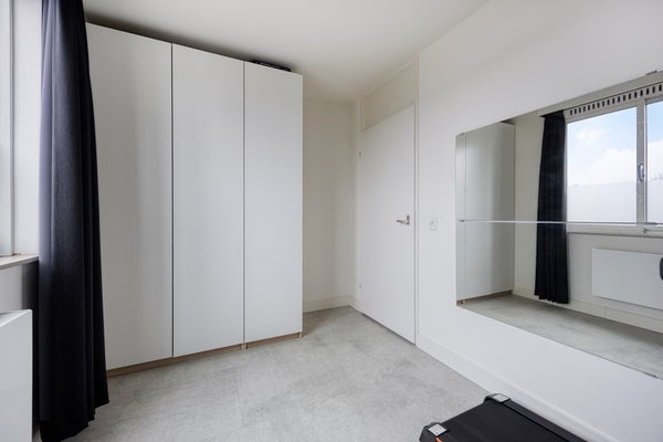 Aan de rustige achterzijde van het appartement bevinden zich twee goed bemeten slaapkamers, geschikt om te slapen, werken of als hobbyruimte te gebruiken. De badkamer is praktisch ingericht met een douche en een wastafel met spiegel. Het toilet bevindt zich in een separate ruimte, wat zorgt voor extra comfort in het dagelijks gebruik. Doordat het appartement volledig instapklaar is, kun je hier zonder klussen direct wonen.