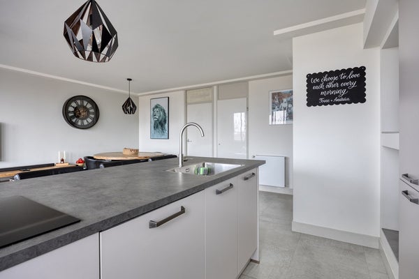 De ruime woonkamer wordt dankzij de grote raampartijen met grotendeels HR++ glas heerlijk verlicht en heeft een prettige, open sfeer. De woonkamer staat in directe verbinding met de open keuken, van waaruit het balkon bereikbaar is. Hier geniet je in de middag- en avondzon van een drankje of begin je de dag rustig in de buitenlucht. Het balkon is gelegen op het zuidwesten. De keuken is vernieuwd 2021 en voorzien luxe inbouwapparatuur waaronder een Bora downdraft kookplaat, Siemens combioven/magnetron en magnetron, vaatwasser en koel-vriescombinatie.