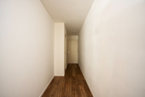 Via de entree aan de voorzijde kom je in een ruime hal met garderobenis. Vanuit hier heb je toegang tot het toilet en de tweede (slaap)kamer — ideaal als logeer- of werkkamer.