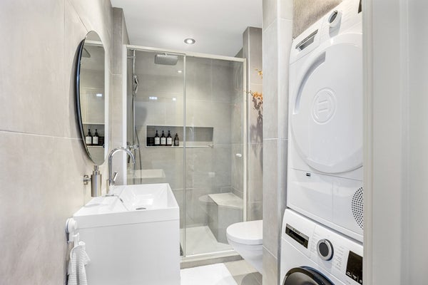Het appartement beschikt tevens over een aparte berging en een eigen parkeerplaats achter het gebouw. Beide zijn bereikbaar via een elektrische garagedeur.