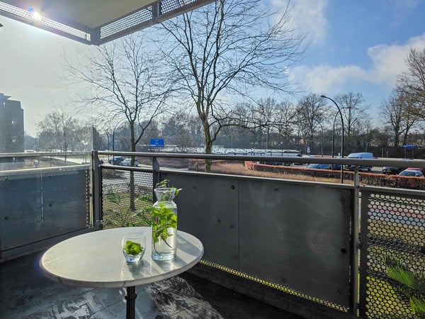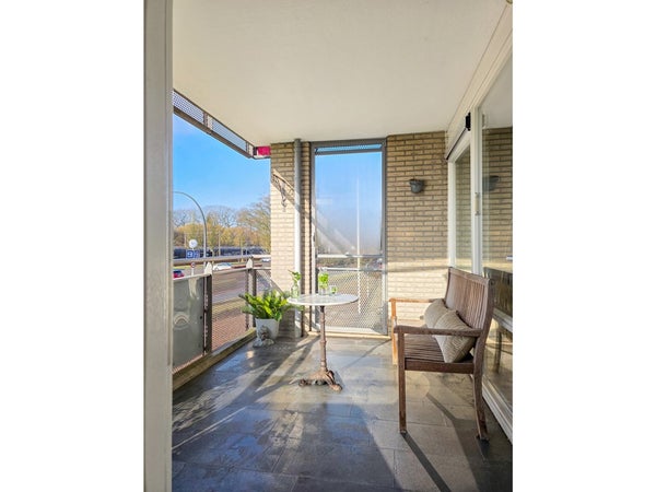 De royale woonkamer vormt het middelpunt van het appartement. Dankzij de grote raampartijen geniet u hier de gehele dag van een prettige lichtinval en een levendig uitzicht richting het stationsplein. De ruimte biedt volop mogelijkheden voor een aangename zithoek en een eethoek. Het balkon, gericht op het zonnige zuiden, is een fijne plek om heerlijk buiten te zitten en van de diverse en het levendige uitzicht te genieten.