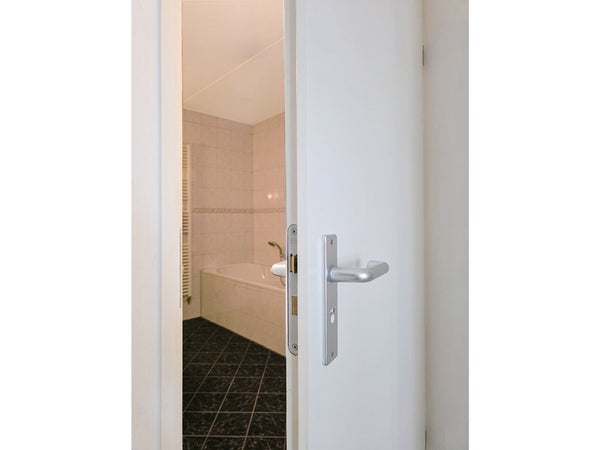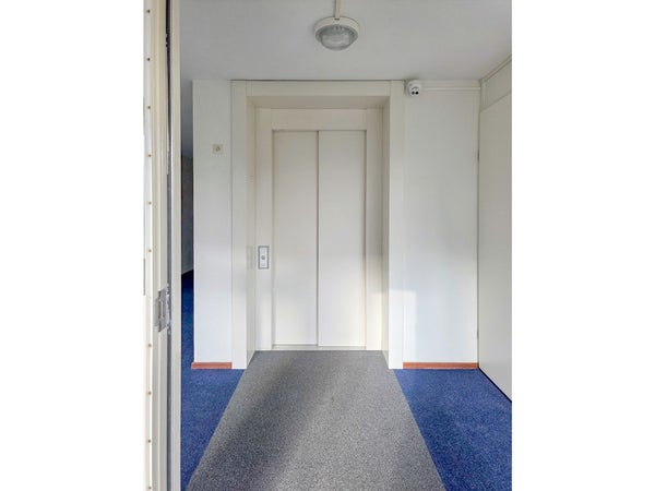 Appartement gelegen op de eerste verdieping en zowel met de trap als de lift bereikbaar.