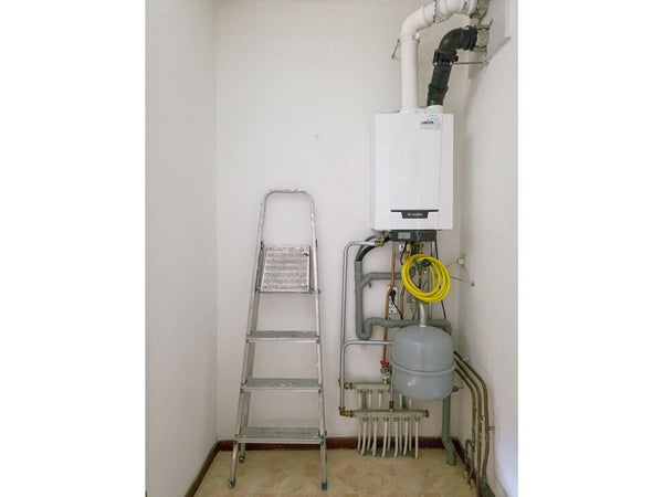 Vanuit de keuken komt u in de bijkeuken met Cv- en wasmachine opstelling.