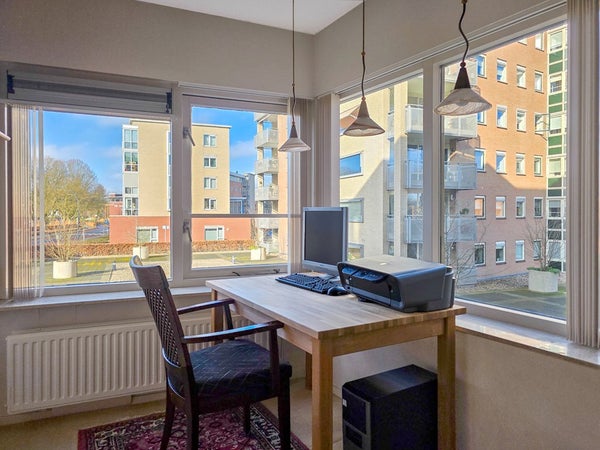 • De portiekflat heeft een woonoppervlakte van 104 m² en beschikt over 3 kamers, waarvan 2 slaapkamers;