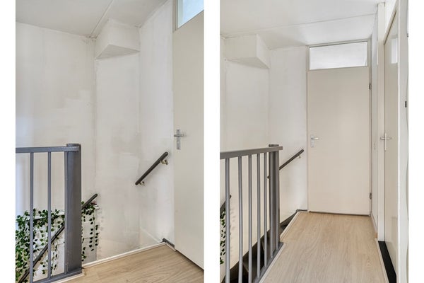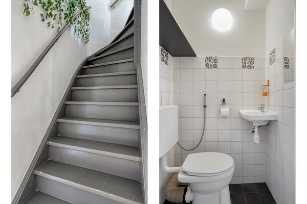Via de entree bereik je de hal met toilet, bergkast en trapopgang.