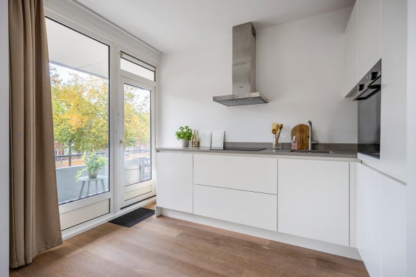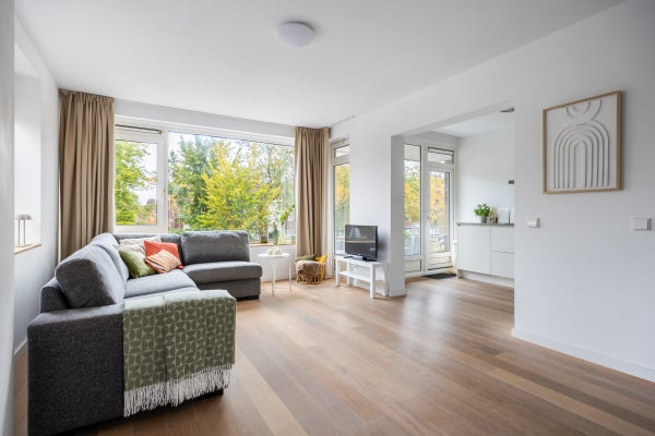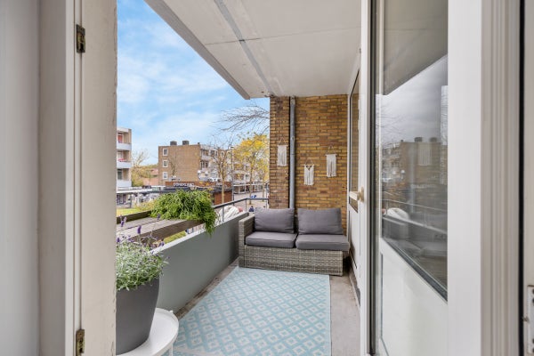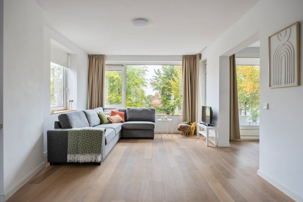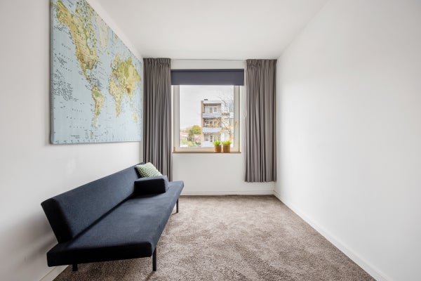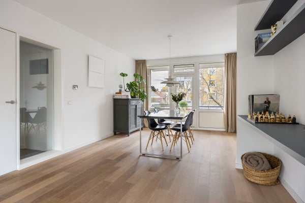 - De portiekflat heeft een woonoppervlakte van 96 m² en beschikt over 3 kamers, waarvan 2 slaapkamers;