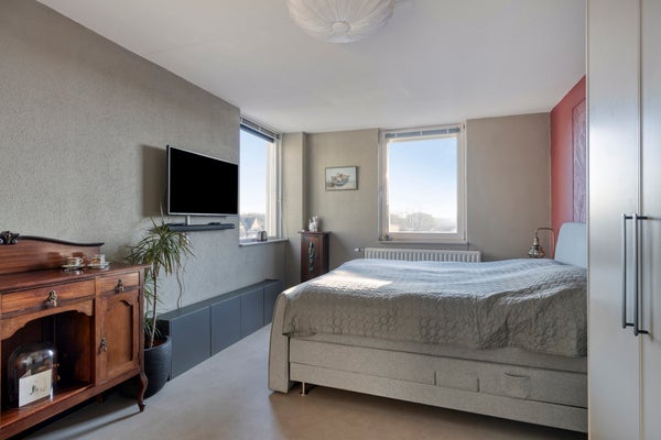 Dit instapklare appartement op de vierde verdieping biedt een comfortabele leefomgeving met een zonnig balkon op het zuiden en een royale garage. Met een woonoppervlakte van ongeveer 96 m², beschikt het appartement over een lichte woonkamer en moderne keuken, beiden gerenoveerd in 2023, twee slaapkamers, en een recent vernieuwde badkamer en toiletruimte. De moderne open keuken is uitgerust met alle benodigde apparatuur. De grote slaapkamer van circa 18,5 m² en de kleinere slaapkamer van 12 m² hebben toegang tot het balkon van 8,5 m². Gelegen in de populaire wijk Princenhage, op loopafstand van winkels en horeca, biedt het een centrale ligging met goede verbindingen naar steden in Nederland en België. De garage van 23 m² heeft een elektrische deur, en de servicekosten bedragen circa € 199,81 per maand.