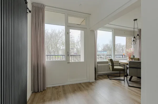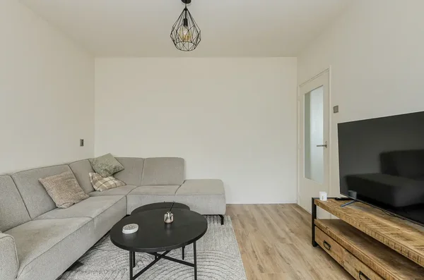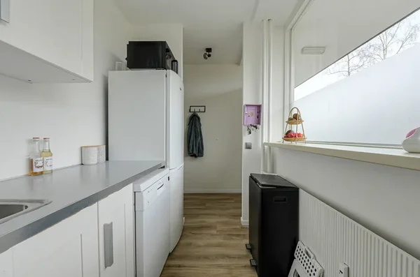 De verzorgde entree geeft toegang tot de bergingen, het trappenhuis en de liften. Bij binnenkomst in het appartement vind je een ruime hal met laminaatvloer die naar alle vertrekken leidt. De grote woonkamer met laminaatvloer biedt uitzicht op groen. De keuken is voorzien van onder- en bovenkasten, een gaskookplaat, vaatwasser en koel/vriescombinatie.