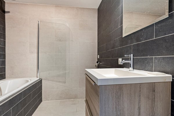 Tussenhal met toegang tot een vaste bergkast en loopdeur naar de overloop. De gehele verdieping is voorzien van een moderne bruinkleurige laminaatvloer en pleisterwerk wanden. Hier treft u de CV-ruimte en toegang tot de ruime slaapkamer 1 (ca. 4.08 x 3.10m.) met toegang tot balkon. Slaapkamer 2 (ca. 3.36 x 2.46m.) met toegang tot balkon. Volledige betegelde badkamer met ligbad, wastafelmeubel en aansluitpunten ten behoeve van de was apparatuur.