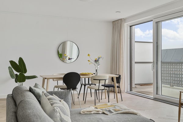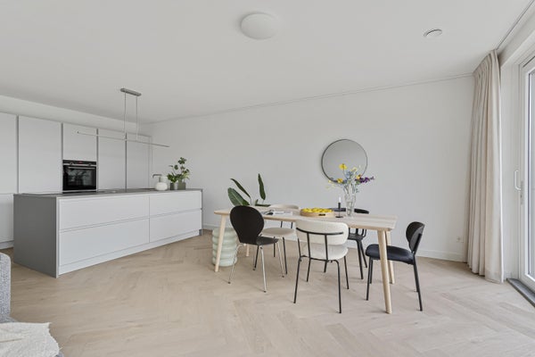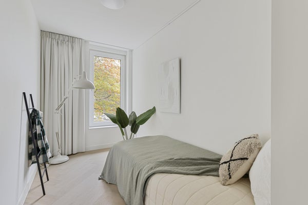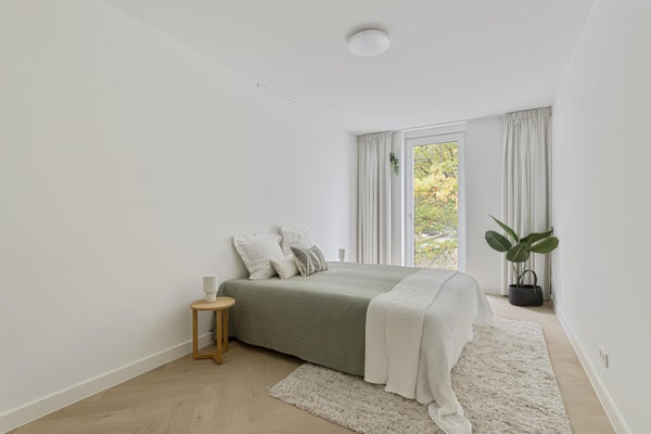 - De portiekflat heeft een woonoppervlakte van 98 m² en beschikt over 3 kamers, waarvan 2 slaapkamers;