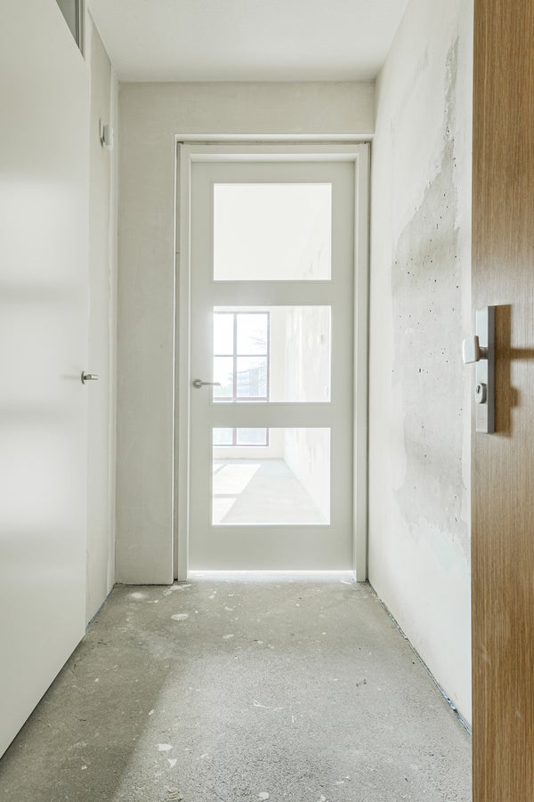-deur met glas tussen woonkamer en hal;