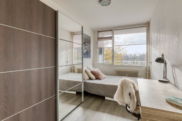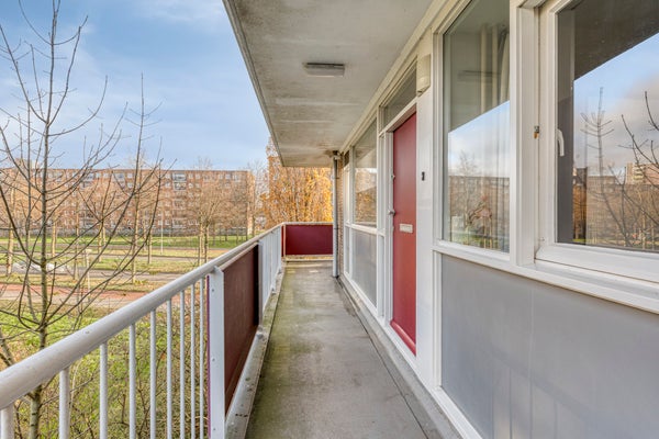 - De galerijflat heeft een woonoppervlakte van 74 m² en beschikt over 3 kamers, waarvan 2 slaapkamers;
