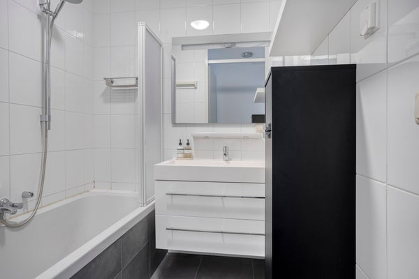 - De portiekflat heeft een woonoppervlakte van 75 m² en beschikt over 2 kamers, waarvan 1 slaapkamer;