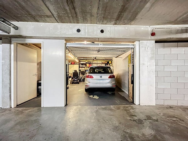 In de parkeerkelder is er een ruime garage van 32 m² voorzien met voldoende opslagplaats. Deze is eenvoudig toegankelijk met de auto en ruim genoeg voor een hogere auto. Daarnaast is er dan tevens nog plaats voor bijvoorbeeld de fietsen.