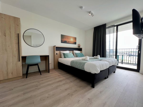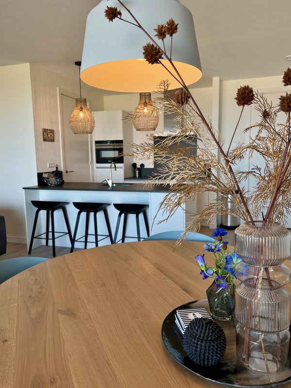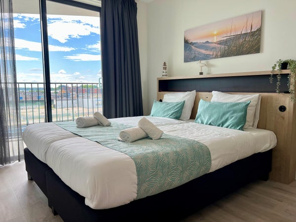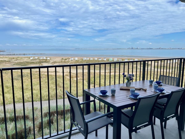 Dit exclusieve appartement op de derde verdieping van Pharos III in Breskens biedt een prachtig uitzicht op de duinen, het strand, de Westerschelde en de jachthaven. Het is volledig gemeubileerd en ligt op loopafstand van de charmante jachthaven en het brede zandstrand. Het appartement beschikt over een ruime woonkamer met een open keuken, uitgerust met moderne Siemens-inbouwapparatuur. Er zijn twee comfortabele slaapkamers, waarvan de hoofdslaapkamer een en-suite badkamer heeft. Beide slaapkamers bieden toegang tot balkons, één gericht op het westen en de ander op het oosten. Het appartement is gasloos en voorzien van vloerverwarming. Parkeergelegenheid is inbegrepen, evenals een afsluitbare berging in de parkeergarage. De maandelijkse servicekosten bedragen ongeveer € 350.