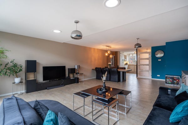 In de geliefde wijk Mayersloot ligt deze royale eengezinswoning, gelegen aan een rustige straat. De woning is ideaal voor gezinnen en bevindt zich op loopafstand van speeltuinen, scholen en winkels. Bij binnenkomst in de ruime woonkamer valt het lichte interieur op, mede door de uitbouw in 2015 met grote raampartijen en openslaande deuren naar de tuin. De moderne keuken is van alle gemakken voorzien.