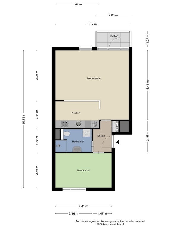 - De portiekflat heeft een woonoppervlakte van 55 m² en beschikt over 2 kamers, waarvan 1 slaapkamer;