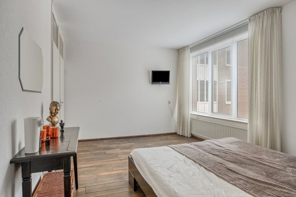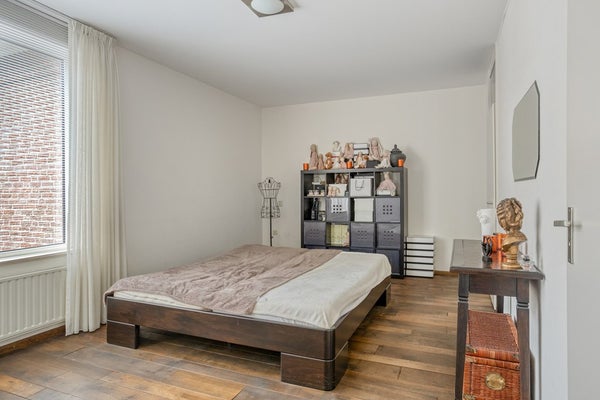 De grootste slaapkamer heeft een massief eiken vloer, behangen wanden en een stucwerk plafond. Veel daglicht aanwezig via een groot kunststof raamkozijn (draai-/kiep) met dubbele beglazing en een vliegenhor met zicht op de binnentuin. Aan deze kamer ligt een praktische inloopkleedruimte en is er een directe toegang tot de gemoderniseerde badkamer.