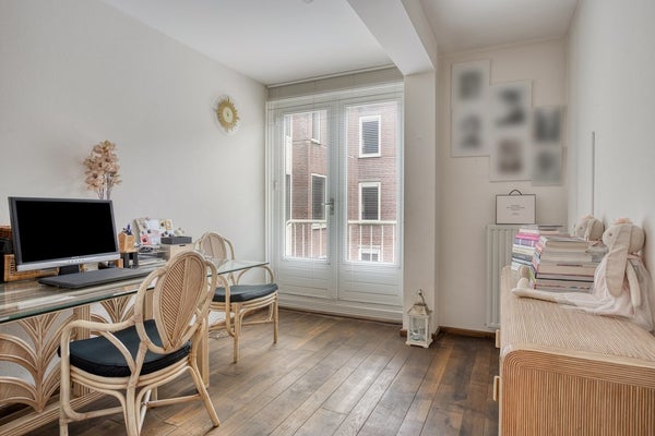 De 2e slaapkamer heeft ook een massief eiken vloer, behangen wanden en een stucwerk plafond. Deze slaapkamer heeft een 'Frans' balkon met binnendraaiende hardhouten deuren met dubbele beglazing en is ook gelegen aan de binnentuin.