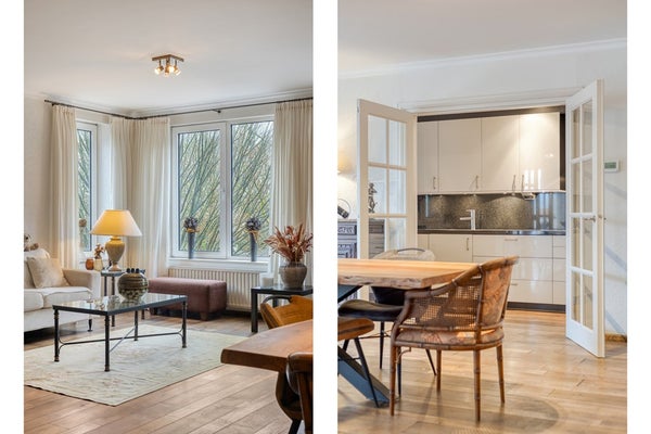 - De portiekflat heeft een woonoppervlakte van 118 m² en beschikt over 3 kamers, waarvan 2 slaapkamers;