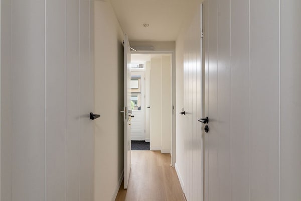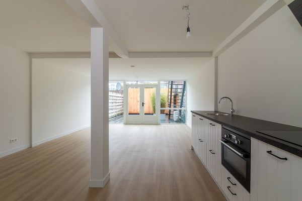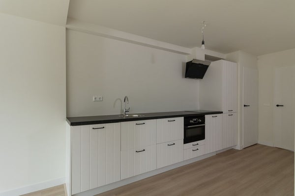 Via de entree met garderobe en meterkast betreedt u het appartement. Vanuit de hal heeft u toegang tot het toilet, de badkamer en de slaapkamer aan de voorzijde. De badkamer is praktisch ingericht en voorzien van douche en wastafel. De slaapkamer biedt voldoende ruimte voor een tweepersoonsbed en kastruimte. Aan de achterzijde bevindt zich de lichte, tuingerichte woonkamer met openslaande deuren naar buiten. Aangrenzend ligt de open keuken in rechte opstelling, wat zorgt voor een prettige verbinding tussen koken en wonen.