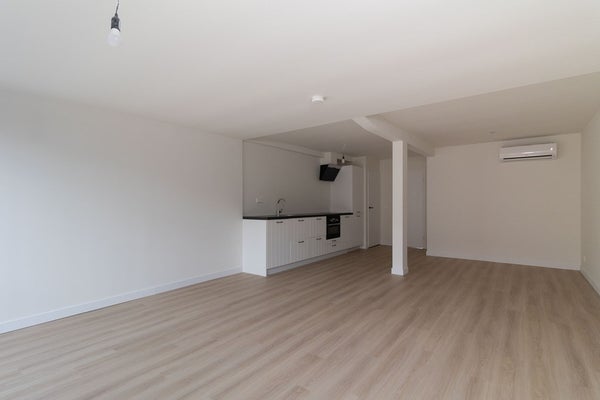 De woonkamer vormt samen met de keuken een prettige leefruimte waar wonen en koken moeiteloos in elkaar overlopen. Alles is overzichtelijk en praktisch ingedeeld, met een fijne rust die past bij gelijkvloers wonen. Ook de badkamer is volledig vernieuwd en sluit naadloos aan bij de rest van de woning, wat zorgt voor een verzorgde en eigentijdse uitstraling.