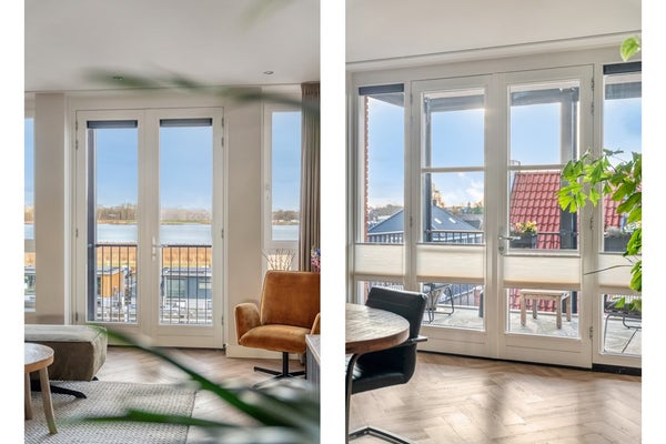 Het appartement beschikt over twee balkons. Het balkon op het noorden biedt een schitterend uitzicht over het Eemmeer en vormt een heerlijke plek om te ontspannen. Het royale balkon aan de zuidzijde is perfect om van de zon te genieten.