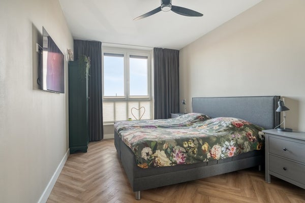 Op de tweede etage van de Zuiderzeeboulevard 72 ontvouwt zich een appartement waar licht, ruimte en uitzicht perfect samenkomen. Met een lengte van ruim zestien meter voelt deze woning uitzonderlijk royaal aan, waarbij de woonruimte zich uitstrekt van balkon tot balkon.