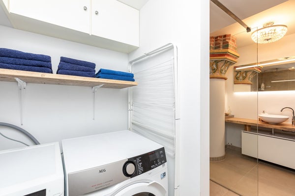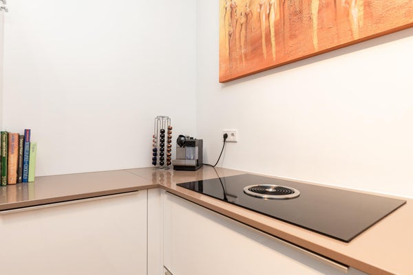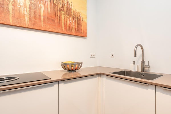De moderne keuken is uitgerust met topmerk apparatuur en biedt volop opbergruimte, ideaal voor de culinaire liefhebber.