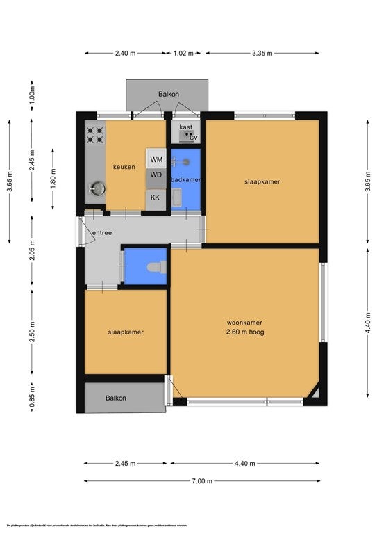 - De portiekflat heeft een woonoppervlakte van 54 m² en beschikt over 3 kamers, waarvan 2 slaapkamers;