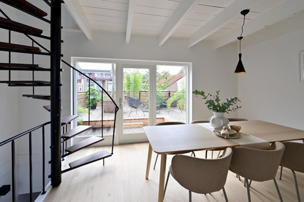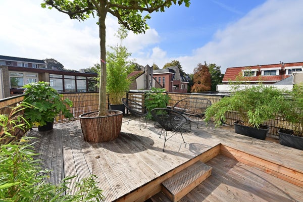 Dit recent gerenoveerde appartement aan de Nassaulaan biedt een sfeervol en modern wooncomfort. Met een zelfstandige entree aan de Veldweg, kijkt het uit over de Nassaustraat en ligt het midden in het gezellige centrum van Bussum. Op de begane grond is er een hal met aansluiting voor wasapparatuur en voldoende ruimte voor een fiets. De eerste verdieping herbergt een ruime eetkeuken met toegang tot een groot zonnig dakterras en een open keuken vol inbouwapparatuur. Een prettige slaapkamer grenst aan een gedeeltelijk omheinde patio en heeft een luxe badkamer met inloopdouche. Ook de woonkamer is licht en royaal, met ramen die uitkijken op de straat. Er is een tweede multifunctionele kamer en de woning is volledig geïsoleerd en voorzien van vloerverwarming. Met in totaal 102 m² woonoppervlak, 5 kamers en een patio van 9 m² biedt dit appartement veel ruimte. De VvE-bijdrage bedraagt €190 per maand. Parkeren is mogelijk met vergunning.