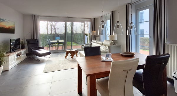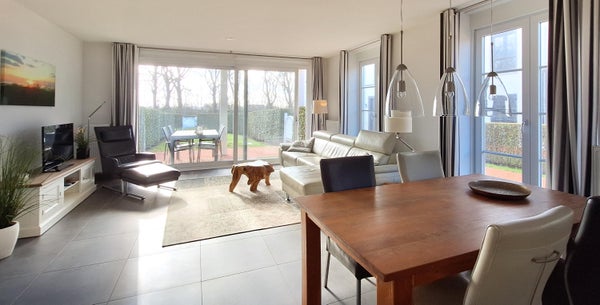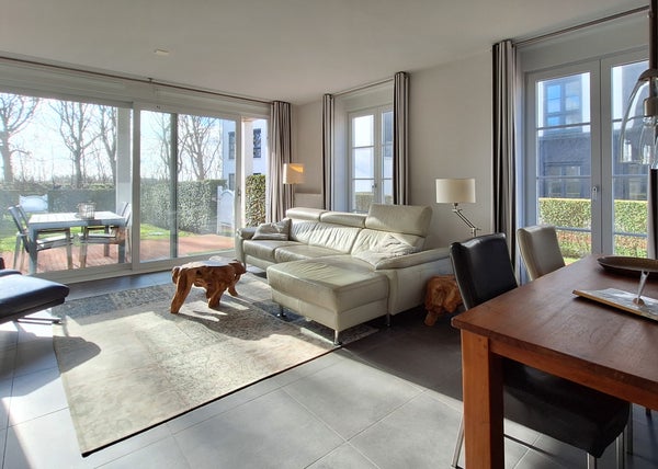 Uw eigen huis aan zee! Dit lichte en instapklare appartement bevindt zich op de begane grond van gebouw VI in het luxueuze domein Duinhof, gelegen in het hart van Cadzand-Bad. Met twee comfortabele slaapkamers, een zonnige privé-tuin en een perfecte ligging op loopafstand van het strand, biedt dit appartement een ideale plek voor ontspannen wonen aan de kust. De ruime hal leidt naar een lichte woonkamer met grote ramen en een schuifpui naar de tuin. De open keuken is uitgerust met een keramische kookplaat, combimagnetron, koelkast met vriesvak en vaatwasser. Beide slaapkamers hebben inbouwkasten, en de moderne badkamer beschikt over een inloopdouche en een wastafelmeubel. Bijzonderheden zijn onder andere een oppervlakte van ca. 79 m² en een energielabel A.
