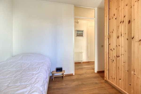 Er is één slaapkamer met ruimte voor een tweepersoonsbed. De badkamer is voorzien van douche, wastafel en toilet. In de bergkast bevindt zich de cv-installatie, een wasmachine en is er opbergruimte voor huishoudelijke spullen.