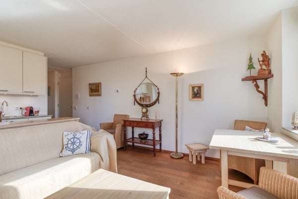 U kunt het appartement binnen via de centrale inkomhal maar ook direct via het privé terras. Bij het binnenlopen van de woonkamer zult u aangenaam verrast worden door het vele licht wat binnen schijnt door de ramen aan de zuid- en westzijde. Zo kunt u zelfs in het appartement van de zon genieten. Op zonnige dagen kan de terrasdeur volledig open gezet worden waardoor u het terras en de buitenruimte optimaal betrekt bij de woonruimte.