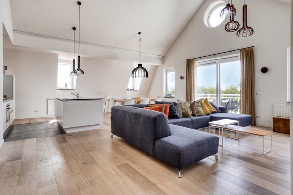 Dit luxe en royale penthouse in Duinhof Oost, Cadzand-Bad, ligt aan de rand van Cadzand-Bad, dichtbij het strand, de duinen en de jachthaven. Het bevindt zich op de derde verdieping en biedt een woonoppervlakte van circa 130 m², volledig afgewerkt met eikenhouten vloeren, behalve in de natte ruimtes. Via de hal bereikt u de lichte woonkamer met hoge plafonds en een schuifpui naar het zuidwestelijk balkon met uitzicht over het groen. De luxe open keuken is voorzien van moderne apparatuur. Het penthouse heeft drie slaapkamers en drie badkamers, waaronder een hoofdslaapkamer met badkamer en suite. Verder zijn er twee bergingen en een parkeerplaats in de parkeerkelder beschikbaar. Recreatief gebruik en verhuur zijn toegestaan.