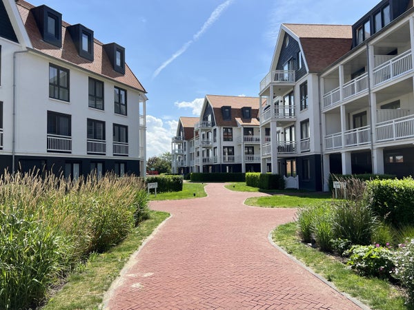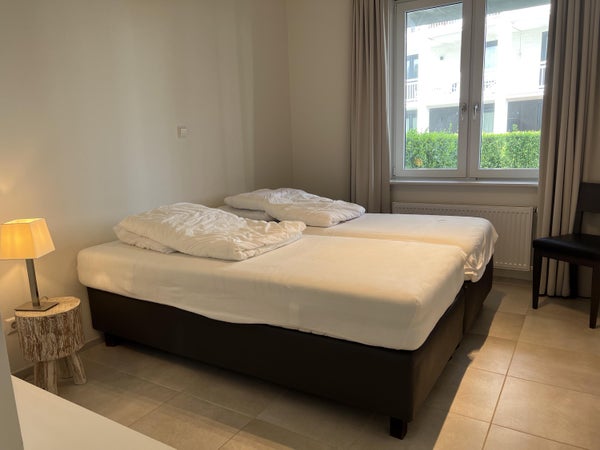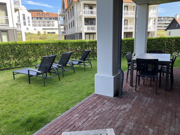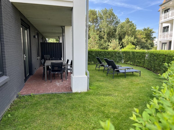 Dit appartement in Cadzand-Bad ligt net achter de duinen en biedt een rustige ligging met 2 slaapkamers. Gelegen op de begane grond van gebouw VIII van Duinhof Oost, beschikt het over een ruime tuin dichtbij het strand en de zee, met winkels en restaurants in de omgeving. De indeling bevat een ruime hal met open bergkast en toilet, een lichte woonkamer met openslaande deuren en schuifpui naar de tuin met 2 terrassen. De open keuken is voorzien van moderne apparatuur. Beide slaapkamers hebben een open kledingkast en en-suite badkamers met inloopdouches. Het appartement (ca. 88 m²) is instapklaar en heeft energielabel B. De tuin, gericht op het noordwesten, wordt onderhouden door de VVE. De maandelijkse servicekosten bedragen € 318,86.