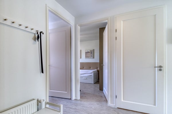Via de hal zijn de twee slaapkamers te bereiken beide voldoende groot voor een tweepersoonsbed. Verder is er vanuit de hal toegang tot de badkamer met douche, dubbele wastafel en toilet en er is een apart tweede toilet met fonteintje.