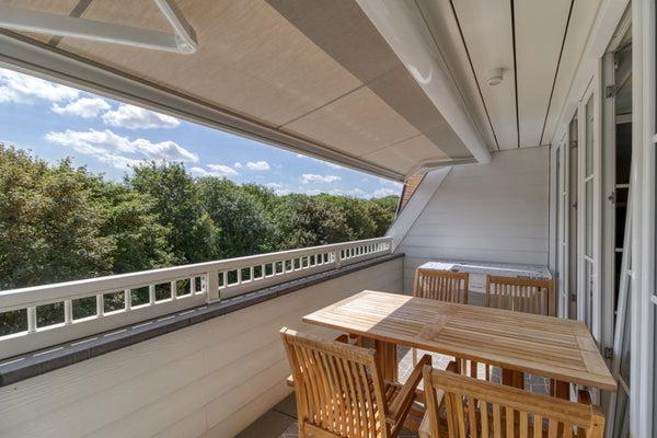 Het balkon is 1,90 bij 5,20 meter groot en gelegen op het zuiden. Vanaf het balkon is er uitzicht op veel groen en een bomenrij waardoor er ook veel privacy is. Door de gunstige ligging kunt u hier het grootste deel van de dag heerlijk genieten van de zon. Doordat het balkon gedeeltelijk inpandig is, is het er windbeschut waardoor u al vroeg in het jaar buiten kunt zitten. Een perfecte plek om rustig een boekje te lezen onder het genot van een hapje en drankje!