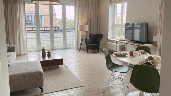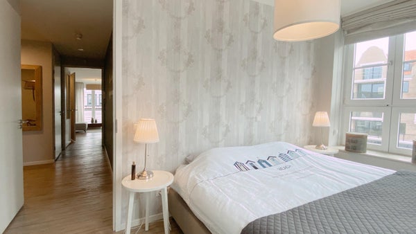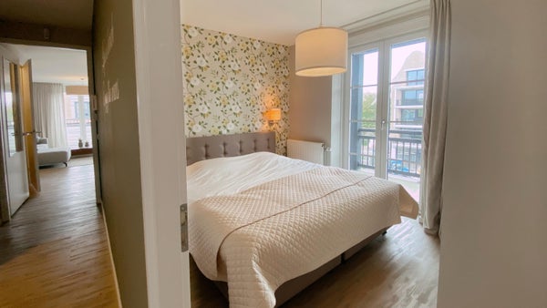 In de populaire badplaats Cadzand-Bad, nabij de duinen, het strand en de zee, ligt dit luxe appartement op de derde verdieping van gebouw V binnen het Domein Duinhof Zuid. Het appartement heeft een uitstekende ligging en biedt een prachtig uitzicht dankzij grote ramen en twee terrassen. Bij binnenkomst in de ruime hal vindt u een sfeervolle woonkamer met openslaande deuren naar de balkons, waar u uitzicht heeft op de duinen en het polderlandschap. De halfopen keuken is uitgerust met moderne apparaten, waaronder een keramisch fornuis en een SMEG koelkast. Er zijn twee comfortabele slaapkamers, en de luxe badkamer beschikt over een inloopdouche en ligbad. Het appartement is instapklaar, volledig gemeubileerd, inclusief een privéberging en een parkeerplaats.