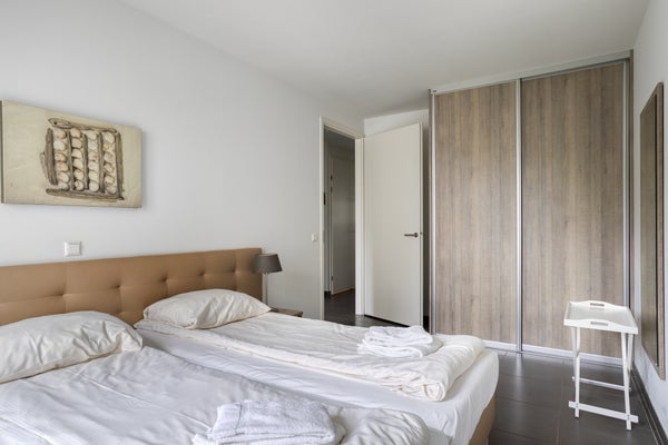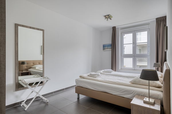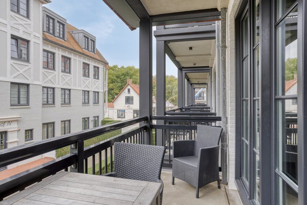 Dit sfeervolle appartement in Duinhof Zuid, op een steenworp afstand van het strand van Cadzand-Bad, biedt rust en comfort. Gelegen op de eerste verdieping van gebouw V, heeft het twee slaapkamers en een balkon op het westen waar u heerlijk van de zon kunt genieten. De centrale entree leidt naar de hal, die toegang geeft tot de woonkamer met open keuken, voorzien van een keramische kookplaat, vaatwasser, combi-magnetron en koelkast. De badkamer beschikt over een inloopdouche en wastafelmeubel, met een extra gastentoilet en bergruimte voor wasmachine en droger. Met een woonoppervlakte van ca. 81 m² en energielabel A+, is het appartement instapklaar, volledig gemeubileerd, inclusief privéberging en een parkeerplaats in de ondergrondse garage.