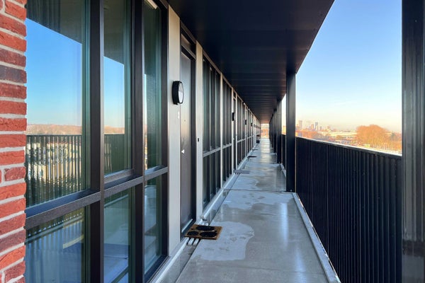 - De galerijflat heeft een woonoppervlakte van 83 m² en beschikt over 3 kamers, waarvan 2 slaapkamers;