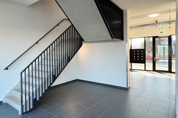 Afgesloten en verzorgde entree met videofoon, brievenbussen, lift en trappenhuis. Vanuit hier heb je toegang tot de bergingen. Aan de achterzijde van het gebouw bevindt zich het parkeerterrein, waar dit appartement beschikt over twee eigen parkeerplaatsen.